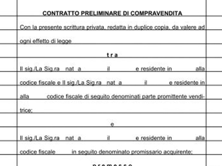 Il preliminare di vendita o “compromesso” è il contratto con il quale il venditore e l’acquirente si obbligano a concludere una compravendita, stabilendone modalità e termini.