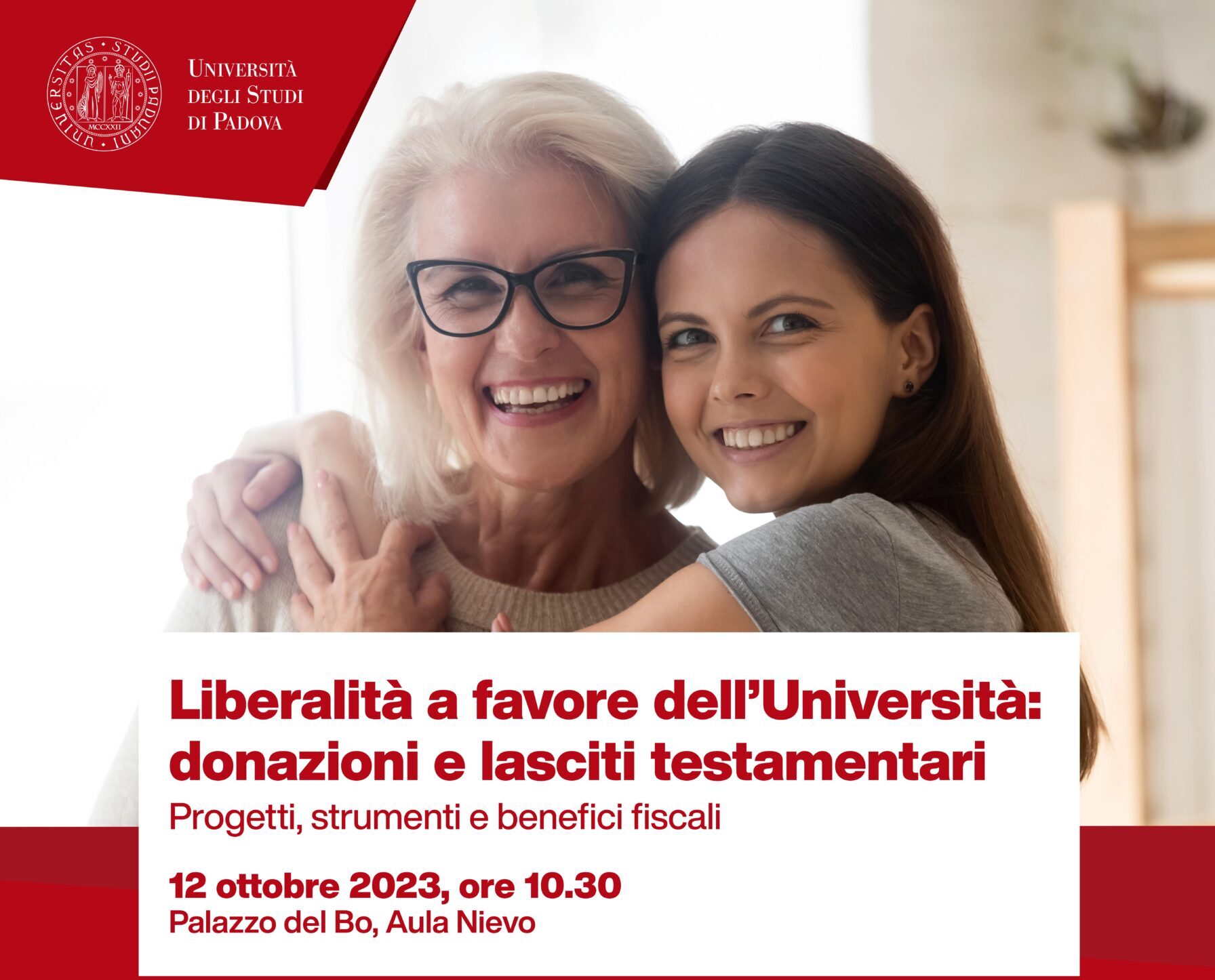 A queste e altre domande vuole rispondere l’incontro informativo e di sensibilizzazione sulle possibilità di sostegno all’Ateneo, in particolare tramite lasciti e donazioni Liberalità a favore dell’Università: donazioni e lasciti testamentari. Progetti, strumenti e benefici fiscali, che si svolge giovedì 12 ottobre in Aula Nievo a Palazzo del Bo.