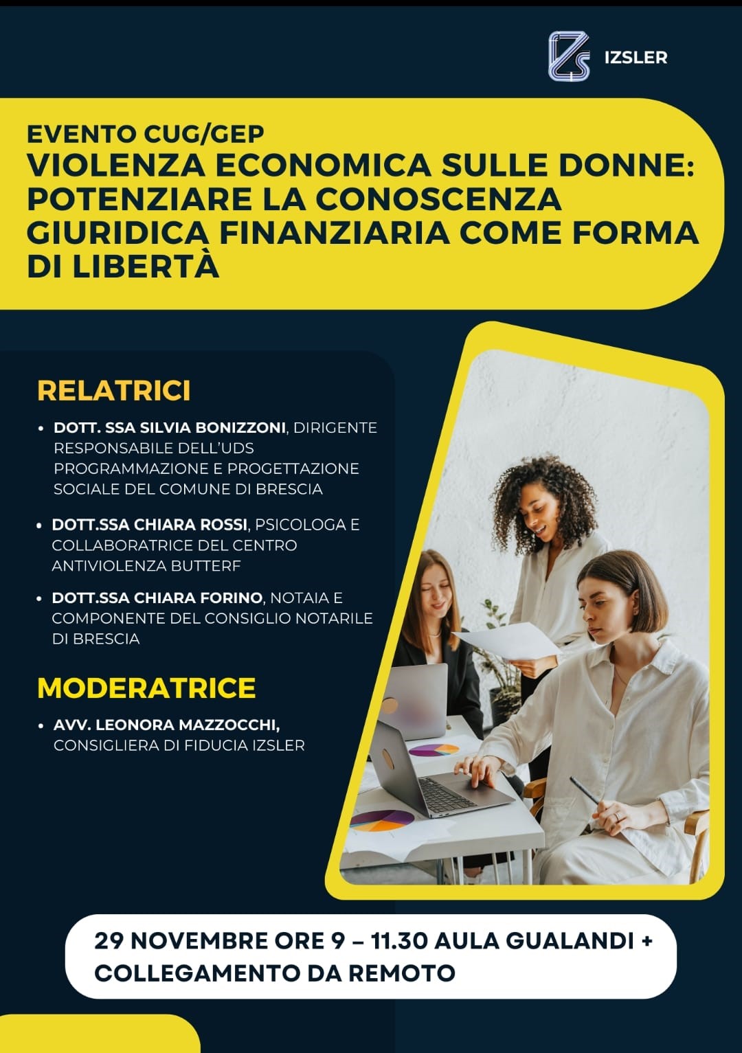 Il Consiglio Notarile di Brescia è intervenuto all’evento promosso, in occasione della Giornata internazionale per l’eliminazione della violenza contro le donne, dall’Istituto Zooprofilattico Sperimentale della Lombardia e dell’Emilia Romagna “Bruno Ubertini” per i suoi dipendenti.