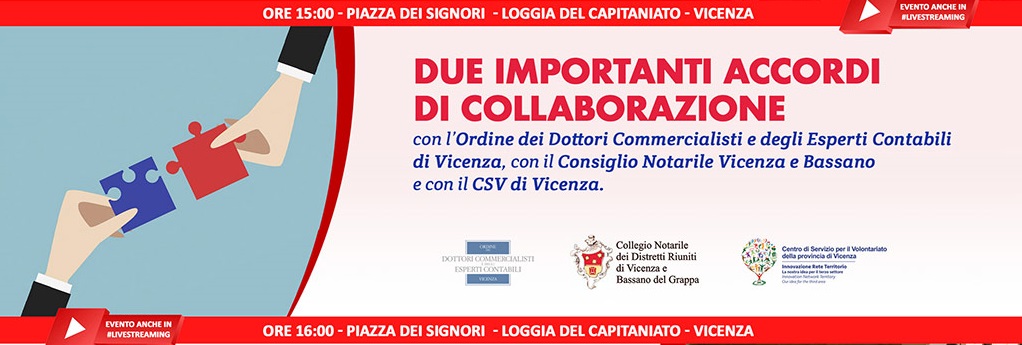 Il 2 ottobre, alle ore 15, presso la Loggia del Capitaniato in Piazza dei Signori a Vicenza, la Presidente Francesca Boschetti del Consiglio Notarile di Vicenza e Bassano del Grappa illustrerà il protocollo di intesa siglato lo scorso maggio con CSV Vicenza per promuovere iniziative di informazione e formazione sulla Riforma del Terzo Settore.