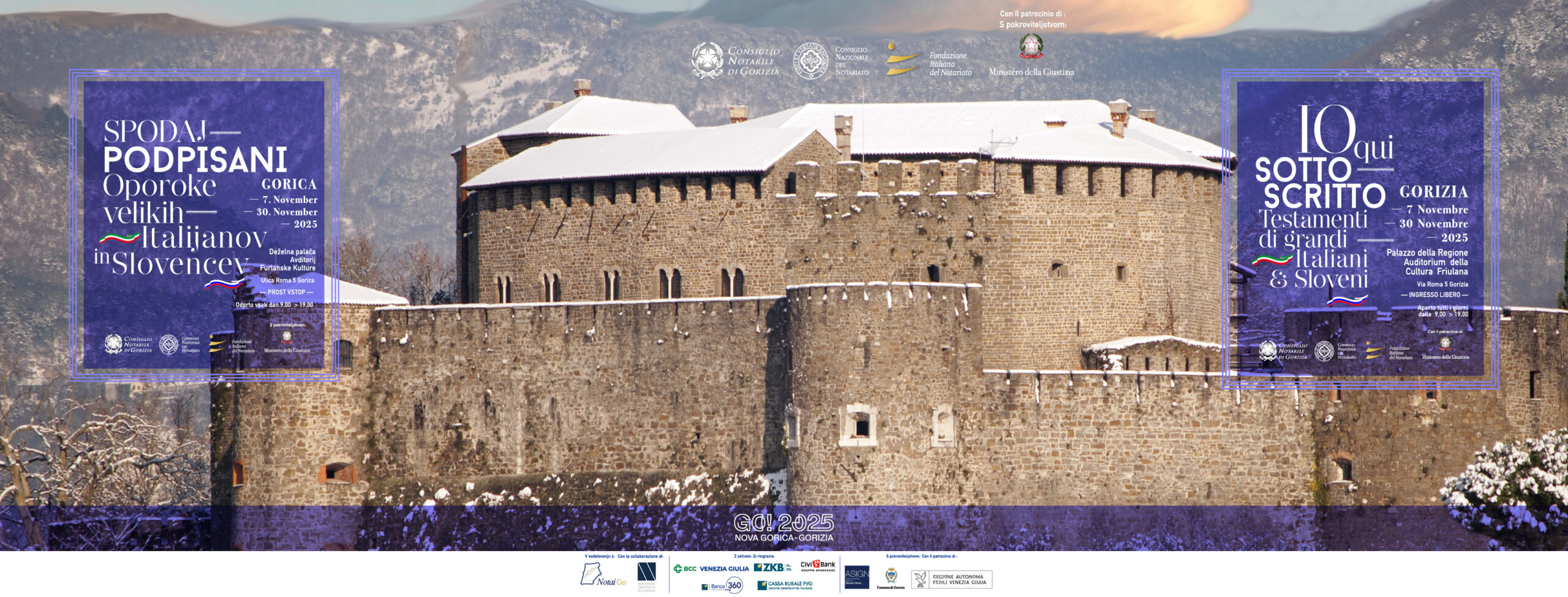 Il Consiglio Notarile di Gorizia annuncia l’inaugurazione della mostra “Io qui sottoscritto. Testamenti di grandi Italiani & Sloveni”, che si terrà venerdì 7 novembre 2025 alle ore 17.00 presso il Palazzo della Regione – Auditorium della Cultura Friulana, in via Roma 5 a Gorizia.