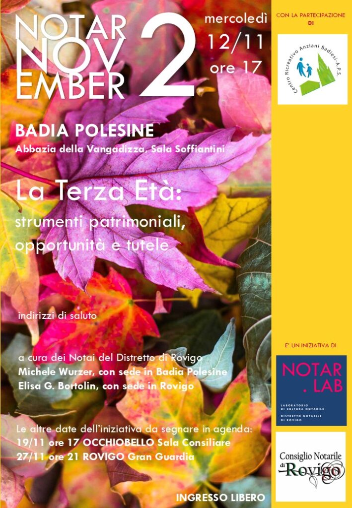 A Badia Polesine, il 12 novembre, si parlerà degli strumenti giuridici che consentono di pianificare una vecchiaia serena, con particolare attenzione alle soluzioni patrimoniali che possono essere attuate disponendo anche della sola casa di proprietà.