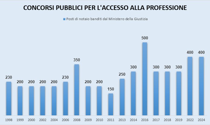 Il numero dei notai in Italia è programmato dal Ministero della Giustizia in relazione all’esigenza di assicurare il pubblico servizio su il territorio nazionale, anche il più disagiato, in stretto collegamento con gli uffici periferici della P.A.